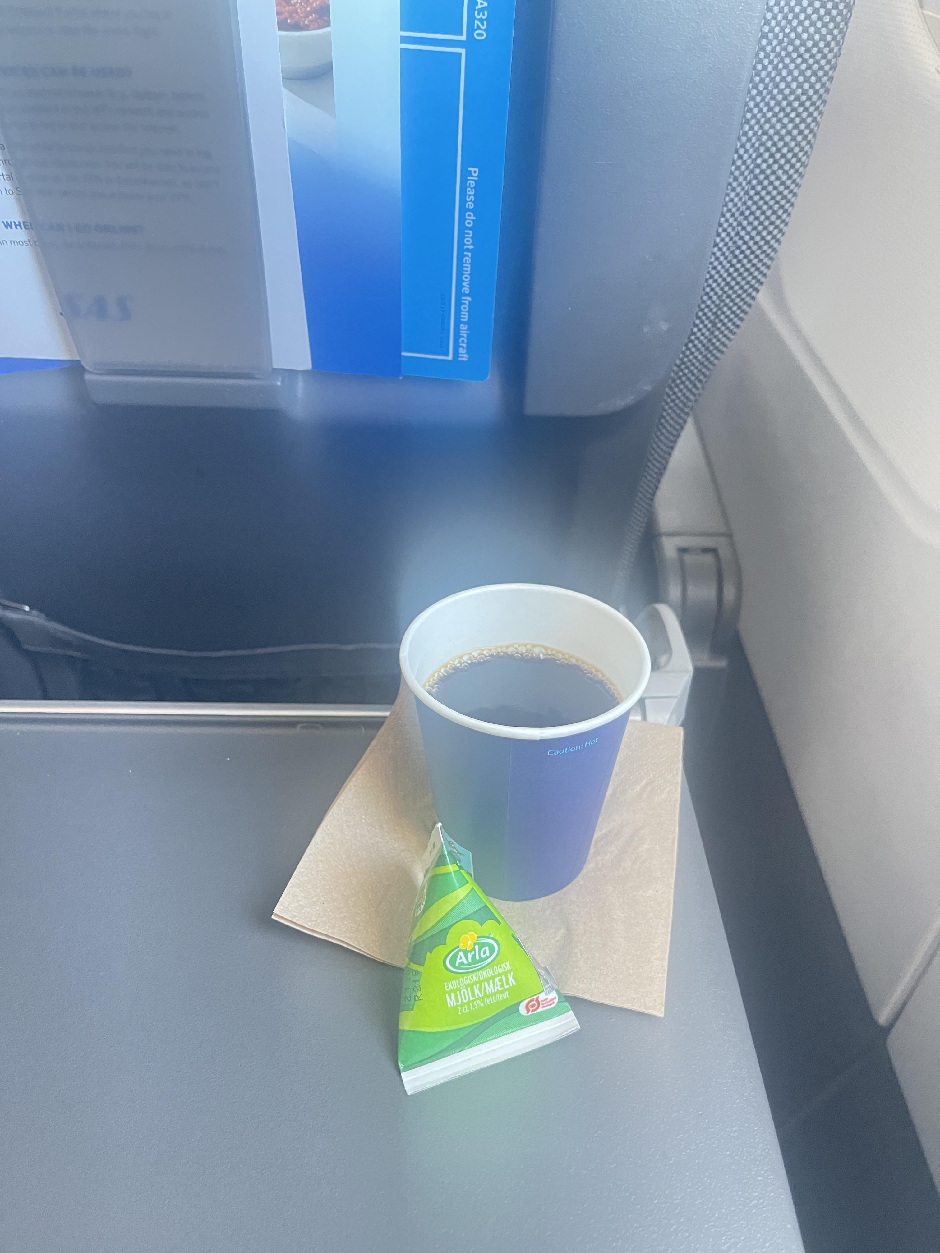 유럽 내 항공은 거리가 짧아서 이코노미는 음료 서비스만 한다. 그나마 sas는 fsc라서 음료라도 준다.. 노르웨지안같은거 타면 음료도 돈 주고 사 마셔야 함 (그래서 안 사 마심). 원래 우유 잘 안타 마셨는데 이날은 우유도 달라고 했는데 저 우유 들어있는 봉지가 너무 귀여웠다. 팩에 들은 커피우유가 생각남.