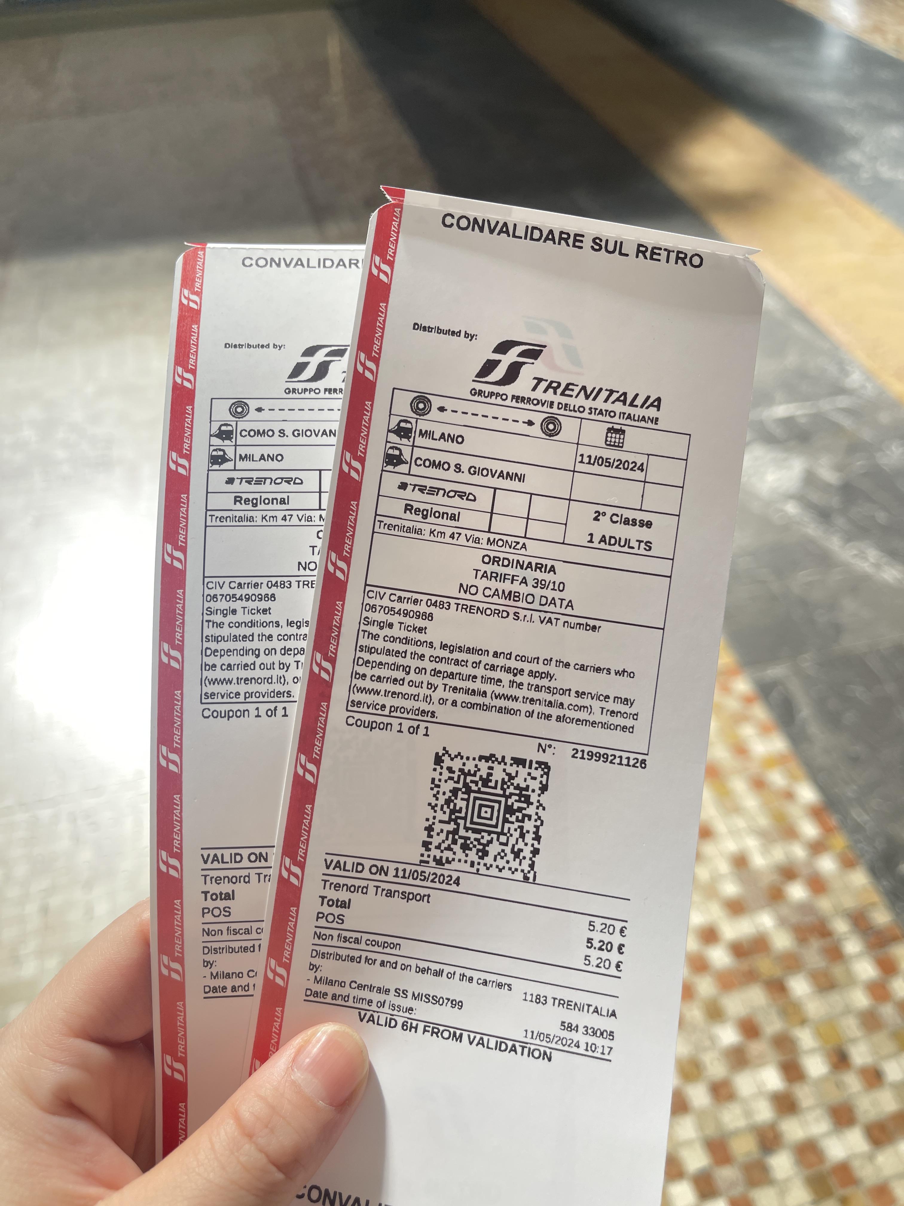 역사 내의 티켓머신에서 티켓을 구매했다. 나는 왕복으로 티켓 구매. 꼬모에 가려면 Como S. Giovanni역에서 내리면 된다. 어딘지 헷갈릴 일도 없는 게 열차 내 98%쯤이 관광객이고 전부 이 역에서 내린다.ㅎㅎ